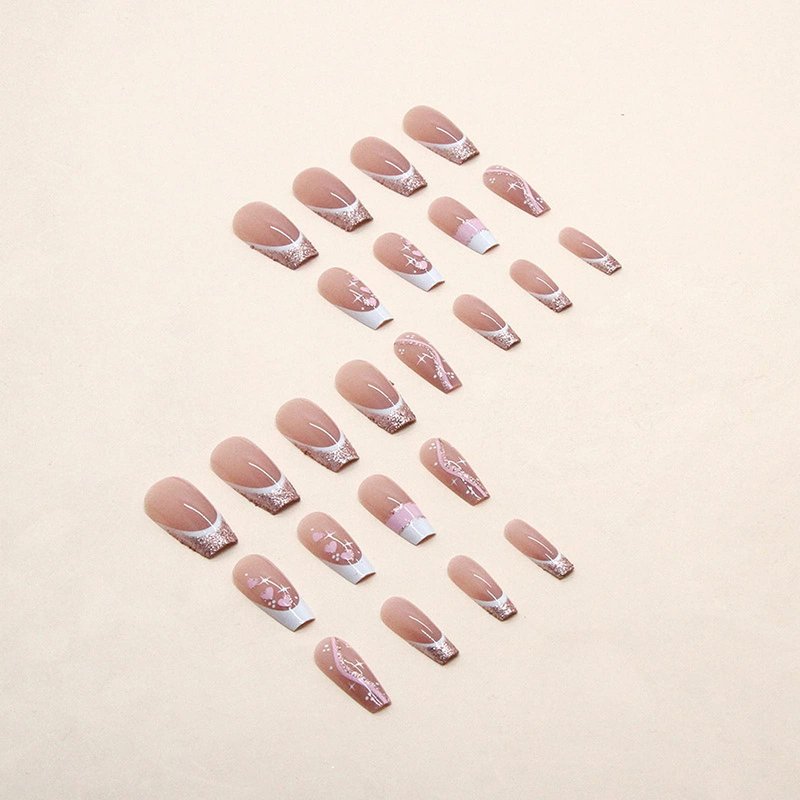 - 【Unique Design】 According to the most popular elements of the moment, these long coffin press on nails are designed with white french tip, sparkly glitter sequins, cute love heart and pink line.