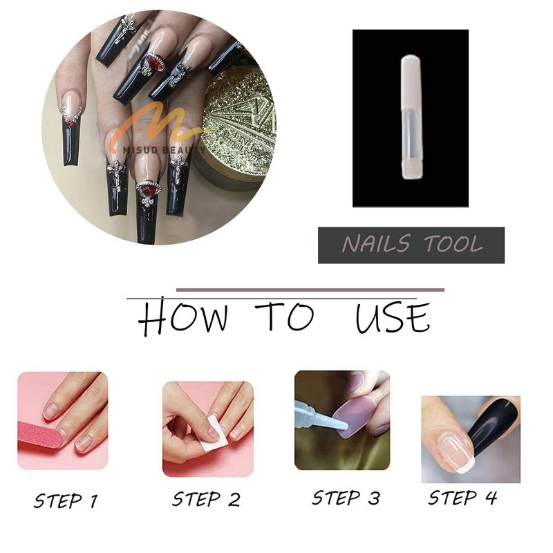 3.Select a right size of the nail, apply the glue to the back of the nail and put it on your fingernails.