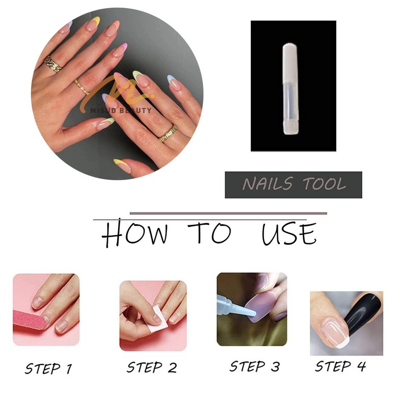 3.Select a right size of the nail, apply the glue to the back of the nail and put it on your fingernails.