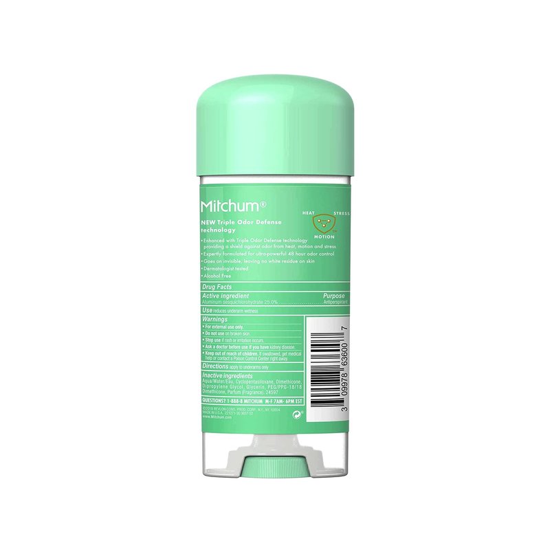 Lady Mitchum Clear Gel Antiperspirant and Deodorant for Odor Protection. No Residue Formula. So Effective You Could Even Skip A Day Quick-drying gel formula leaves no trace of messy white residue on you or your clothes. Proven clinically to provide maximum protection against wetness and odor all day long. Alcohol-free so it won't sting or irritate skin-even after shaving.