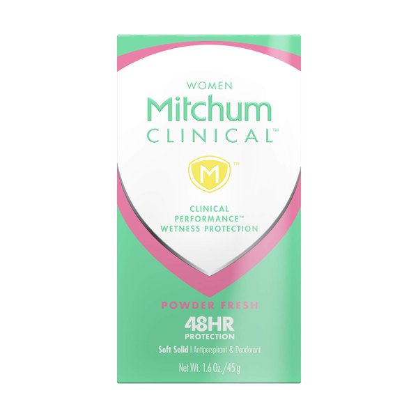 Mitchum Women's Deodorant, Clinical, Soft, Solid Antiperspirant Deodorant, Powder Fresh, 1.6 Oz (Pack of 1),(Package may vary)