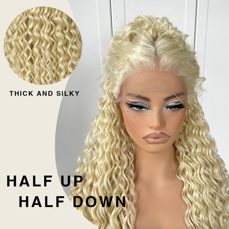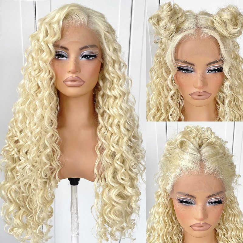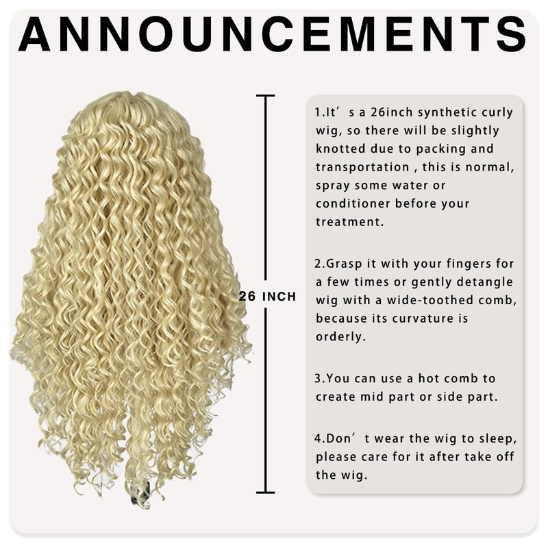 MITIMES 13x6 Curly Wig 613 Glueless HD Lace Front Wigs Pre Plucked Blonde Synthetic Lace Front Wig Long Curly Deep Wave Wig For Cosplay Party