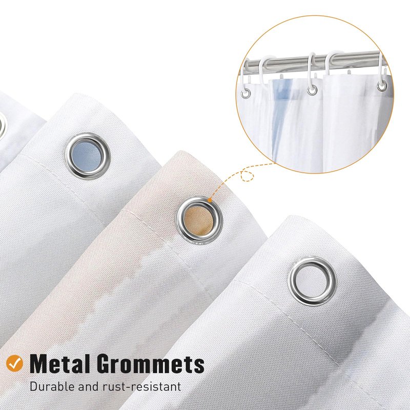 - Easy Installation - Equipped with rustproof grommets, this modern shower curtain effortlessly slides on most curtain rods, ensuring a quick and hassle-free installation process. The number of grommets varies according to width, with 6 grommets for the 36" wide curtain and 12 grommets for the 72".