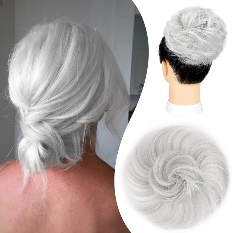 Mitrygreen Messy Hair Bun Piece Extension Elastic Rubber Band Synthetic Chignon Hair Accessories Hair Piece for Women Girls Kids Silver Gray