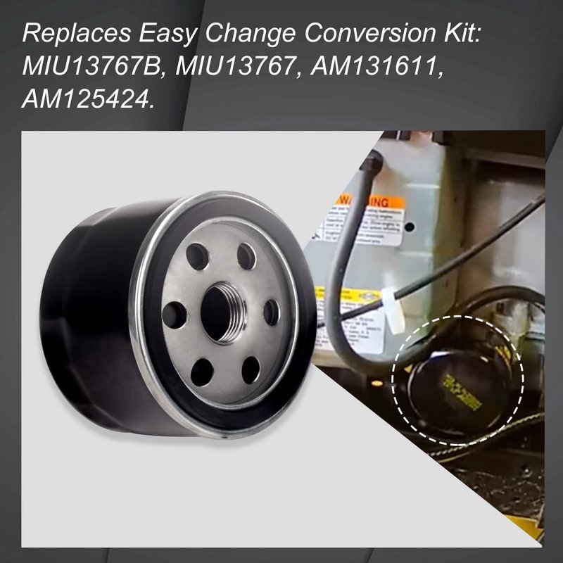- Easy Change Conversion Kit Include: 1 X AM131611, MIU13767 Adapter Fitting , 2 X Oil Filter, AM125424 1 X Drain Plug, 2 X Fuel Filter.