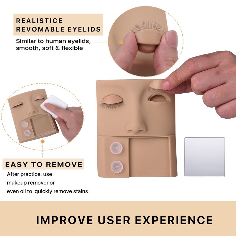 3-in-1 lash mannequin head, you can put eyelash extension tray and glue cups on it, convenient for beginners to practice. Portable design, easy to store and carry with you, allowing you to practice eyelash extension anywhere.