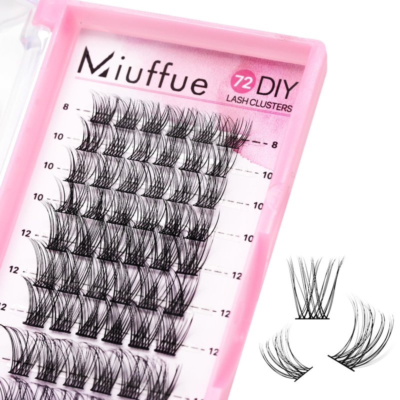 Miuffue Cluster Lashes Wispy 72 Pcs Individual Lashes Cluster DIY Eyelash Extensions Clusters Mink False Eyelashes Super Thin Band Eyelash Clusters (Diamond, C-8-16mix)