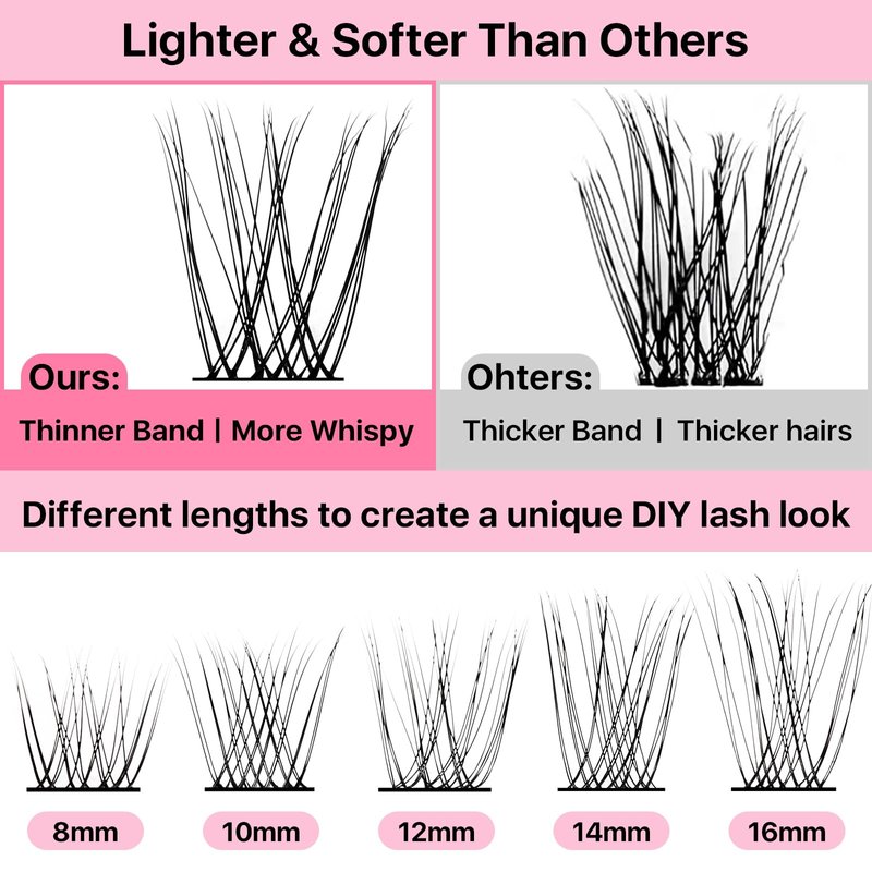 - Comfortable & Reusable: 0.03mm superfine thin band lash clusters adopt high quality synthetic fiber, which are soft, lightweight and comfortable to wear for whole day. Easy to pick up without falling apart, reusable 3-5 times with proper care.