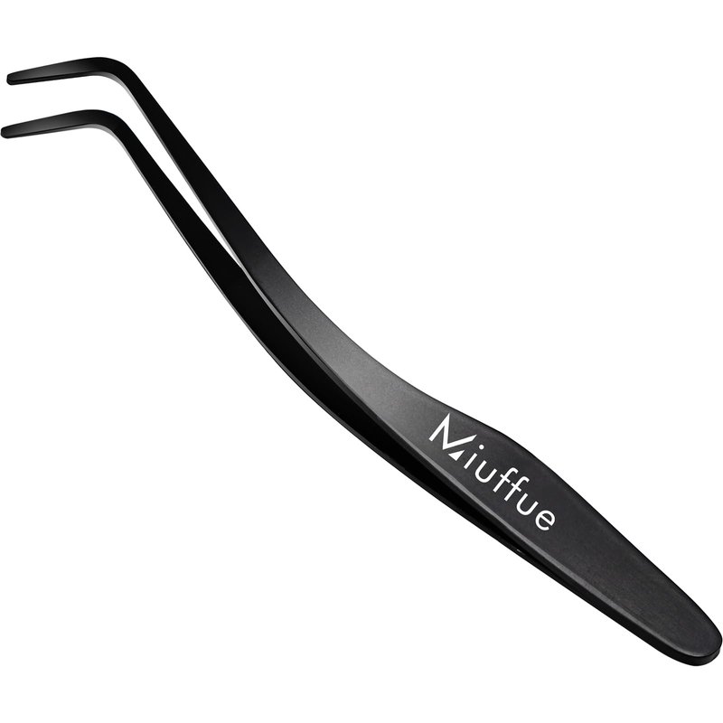 Miuffue Lash Applicator Tool DIY Eyelash Applicator Stainless Steel Curved Eyelash Tweezers for Cluster Lashes (Black)