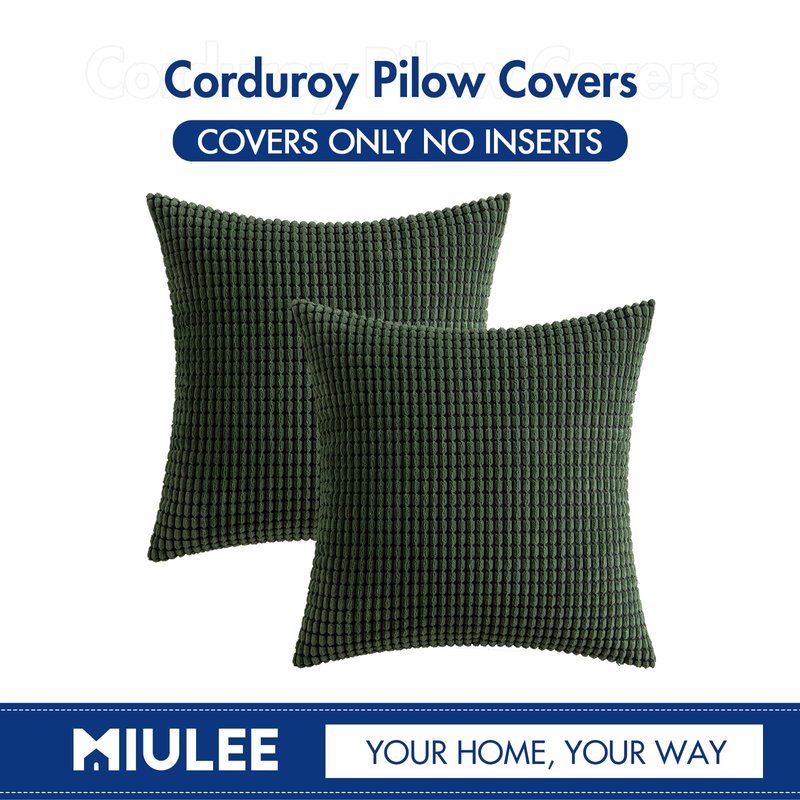 MIULEE Pack of 2 Pillow Covers 18 x 18 Inch Dark Green Super Soft Corduroy Decorative Throw Pillows Couch Home Decor for Spring Cushion Sofa Bedroom Living Room