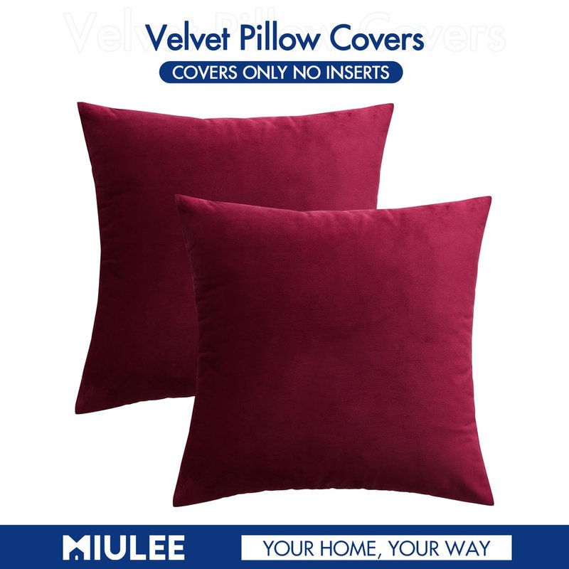 MIULEE Pack of 2 Velvet Soft Solid Decorative Square Throw Pillow Covers Set Cushion Cases Pillowcases for Sofa Bedroom Couch Car18x18 Inch 45x45 Cm