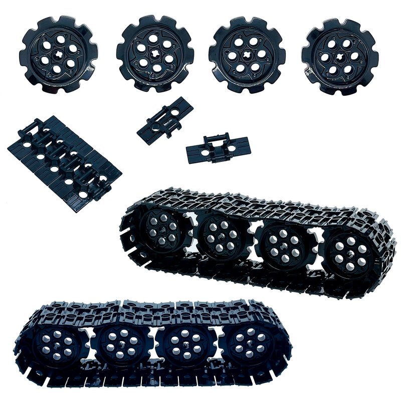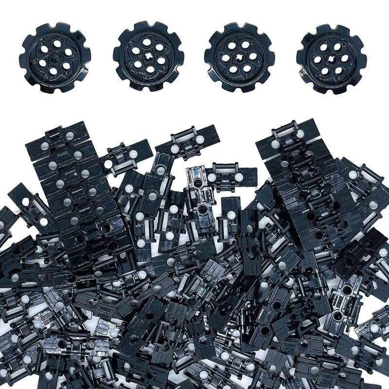 - Includes 100 pcs Tank Track,8 pcs big wheels.