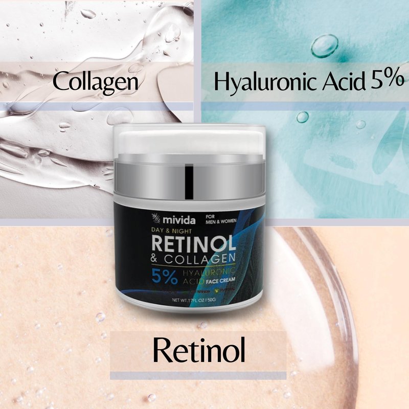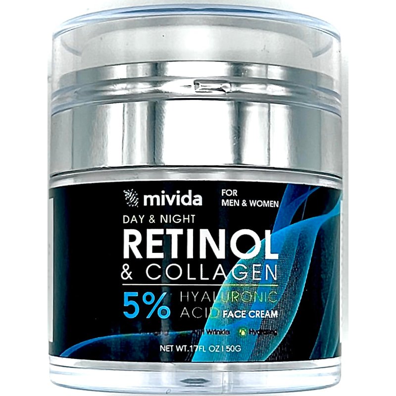 mivida Anti-Aging Retinol Cream For Face With 5% Hyaluronic-Acid | Day & Night Anti Aging Moisturizer, Collagen Cream for Face Reduces Wrinkles, Dryness and Fine Lines | 1.7 fl oz