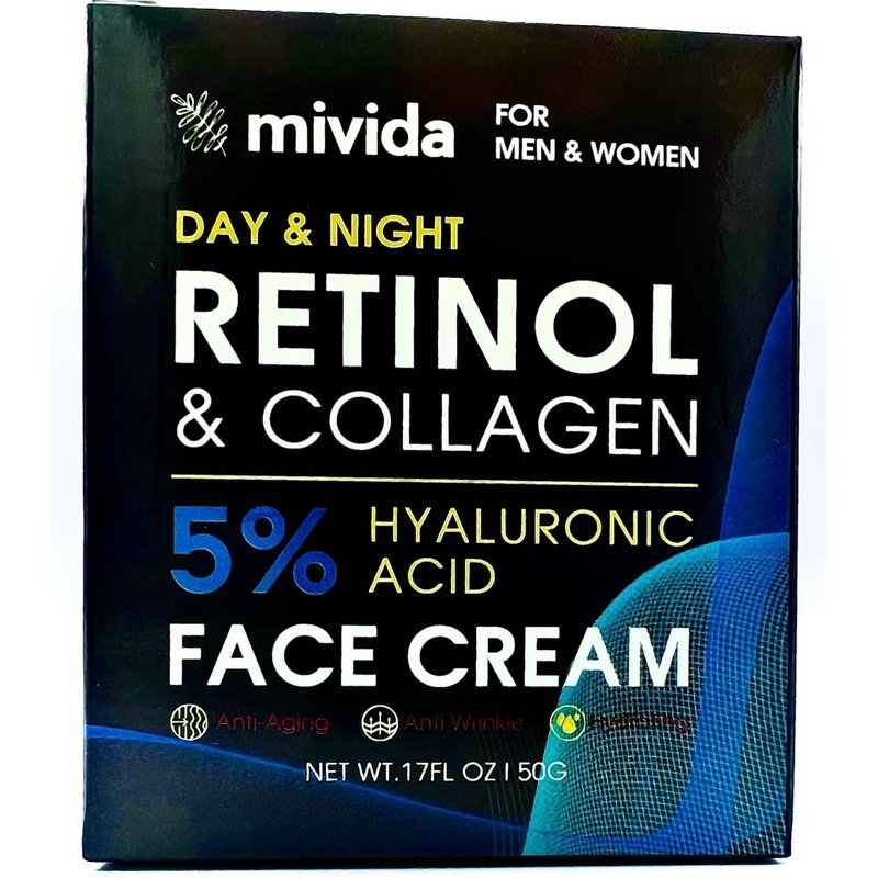 Introducing mivida Retinol Face Cream, designed for both men and women seeking radiant, youthful skin around the clock. Formulated with potent ingredients including retinol, 5% hyaluronic acid, and. The power of retinol in our face moisturizer promotes skin cell turnover, reducing the appearance of fine lines, wrinkles, and uneven skin tone. Paired with 5% hyaluronic acid, it deeply hydrates, leaving skin supple and plump while reducing dryness and flakiness. The addition of collagen enhances skin elasticity and firmness, resulting in a smoother, more youthful complexion.