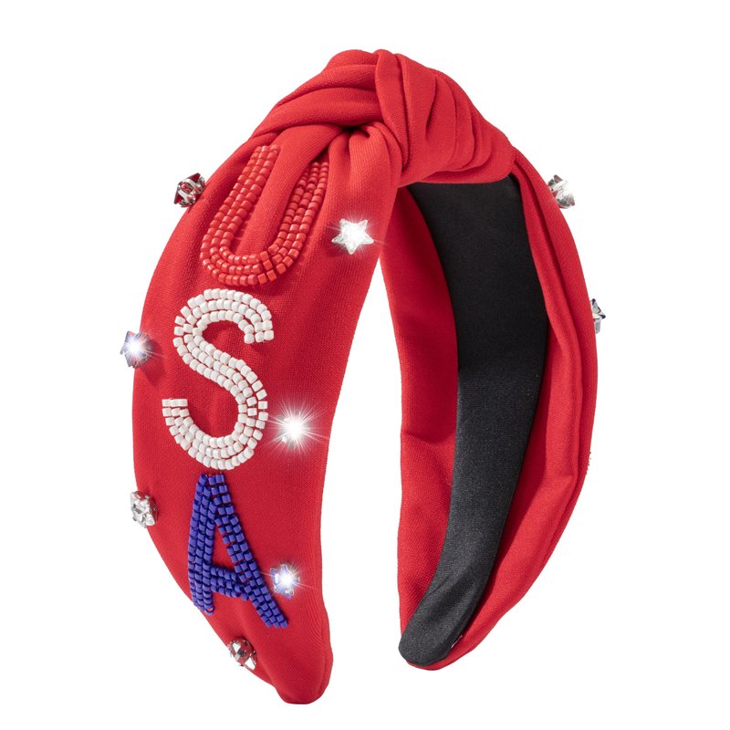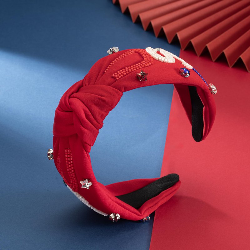 - 4th of July Headbands USA Beaded Knotted Headbands for Women Red White Blue Crystal