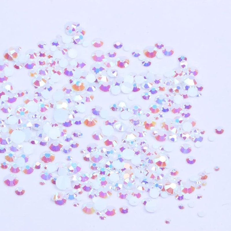 Mixed 1000pcs 2-6mm White AB Resin Nail Rhinestones 3D Non Hotfix Glitter Round Flatback Nail Stones Strass Gems Diamonds DIY Nail Art Decoration (05 White AB)