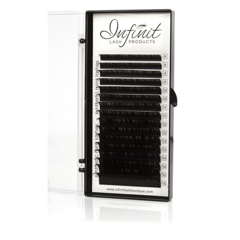 Mixed C-Curl Black Synthetic Mink Eyelash Extension Tray by Infinit | 16 Rows - Thickness: 0.15mm or 0.20mm X Lengths: 8mm~15mm | For Individual Lash Extensions ... (0.15)