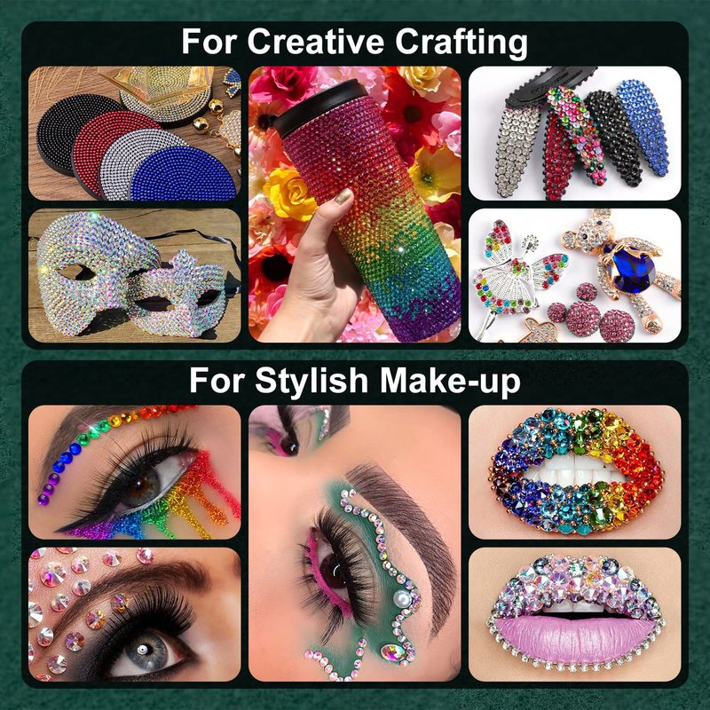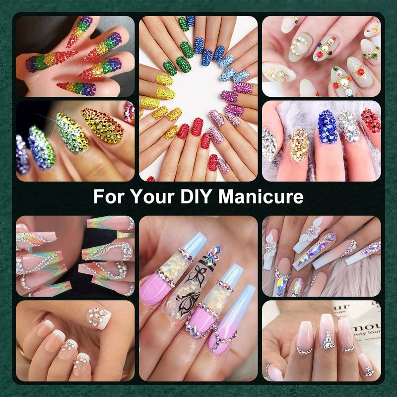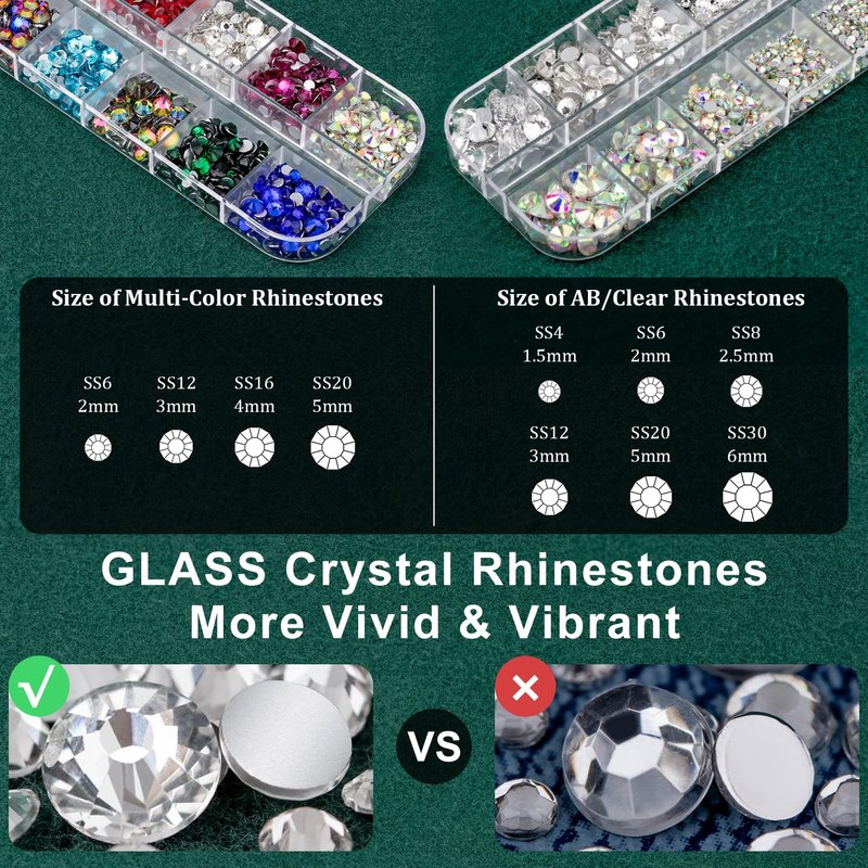 - 💎WIDE APPLICATION -- The shining glass nail art rhinestones are mainly used for nail deco projects, which have more bright and clean glitz. Meanwhile, you can also apply them to beautify your face makeup & body art or bedazzle DIY crafts, like jewelry, wedding dress or shoes, cell phone cases, glasses, greeting cards, bags, guitars, scrapbooks etc.