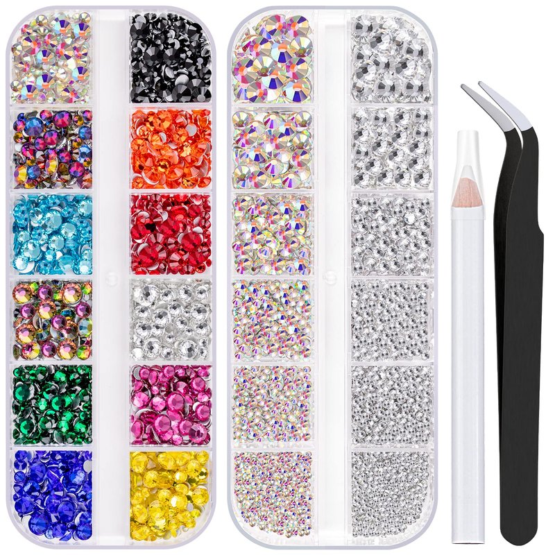 - 💎PACKAGE CONTENT -- You will receive 1 box of mixed color chameleon round flat back glass crystals (2-5mm), 1 box of AB & Clear round flatback glass crystals (1.5-6mm), 1 picking pen and 1 tweezer.