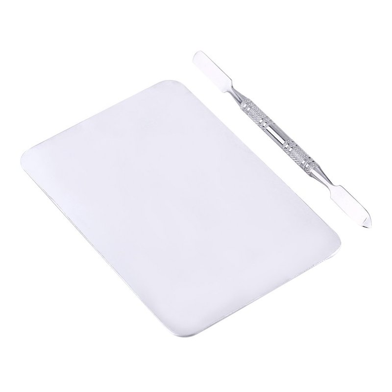 Mixing Palette Small Stainless Steel Makeup Palette Rec Shape Mixing Plate Tools with Spatula Nail Art Palette for Blending Cosmetic Shades
