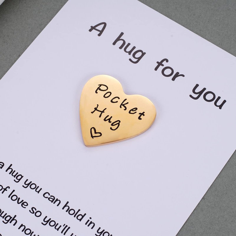 - Package Include: Stainless steel pocket hug token, sentiment card, envelope (Each card comes complete with an envelope)