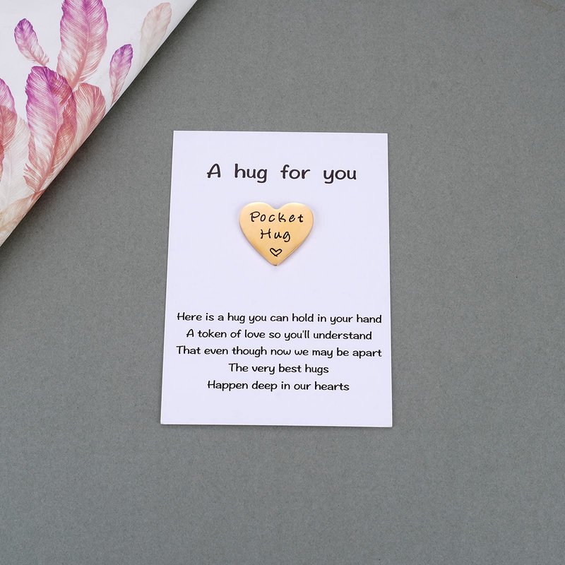 - Little Heart Shaped Pocket Hug Token: A beautiful little token that can be easily posted to a loved one to show them how much you care... While you may not be PHYSICALLY there with them, these lovely little keepsakes remind them that you ARE there with them in spirit and always thinking of them.
