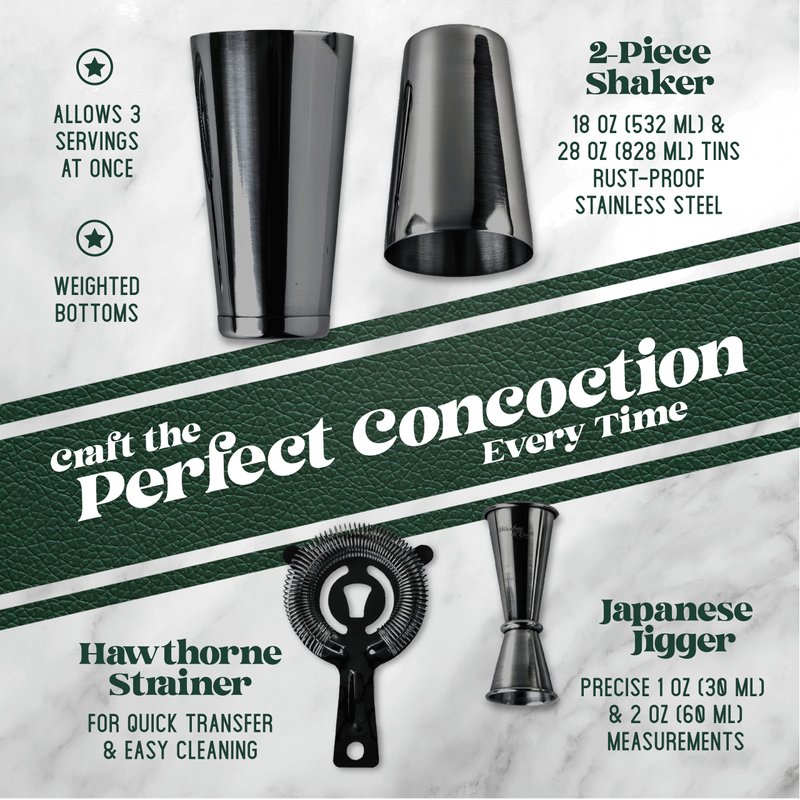 - Convenient: Packaged in a sleek, compact tube container, your Boston shaker set will stay organized and accessible at all times. You can even carry it around and show off your cocktail-making magic!