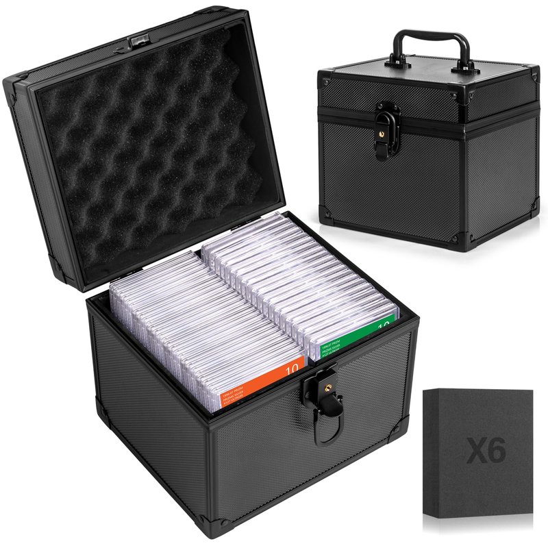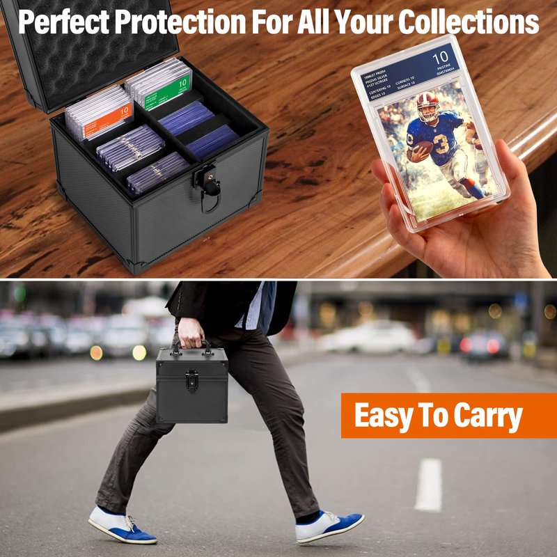 - Wide Compatibility --- This trading card storage box is compatible with PSA / GMA / CSG / SGC / BGS / HGA graded cards. It can also store sleeved cards, top loaders, One Touch, baseball cards, basketball cards, football cards, and MTG cards. It’s the perfect choice for card collectors! Each sports card storage box includes a lock and 2 spare keys. The perfect combination of a sturdy hard shell and soft high-density foam lining creates an unbreakable shield to protect and organize any cards and card holders!