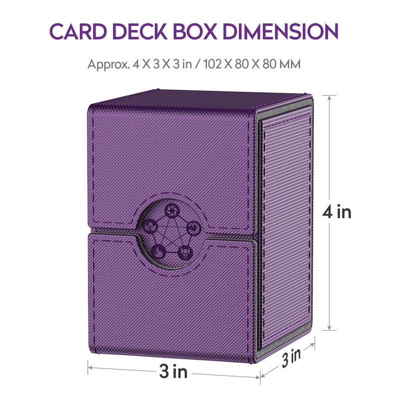 - Larger Storage -- Card deck box size: Approx. 3 x 3 x 4 in. Large Size for up to 110 Single Sleeved Cards / 80 Double-Sleeved Cards / 200 Cards without Sleeves. (Not compatible with Top loaders.)