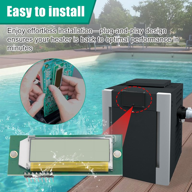 - Precise Temperature Control: Enjoy precise adjustments and real-time monitoring of your pool or spa temperature via LCD screen. Maintain ideal water conditions for maximum comfort and energy efficiency, whether you’re heating up for a family swim or a relaxing soak