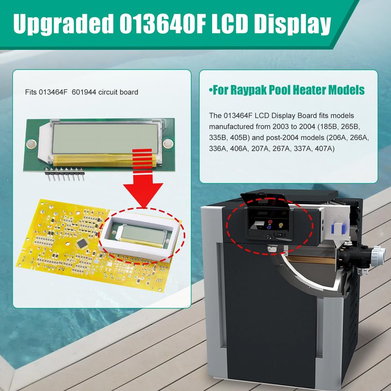 - Part Number:013640F LCD Display Board Stat-Kit fits for Raypak Pool Heater 013464F 601944 circuit board