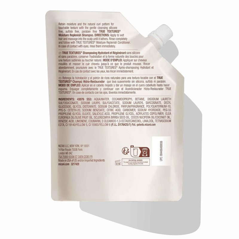 Mizani True Textures Moisture Replenish Shampoo | Smooths & Hydrates | with Coconut Oil | Sulfate & Paraben-Free | for Curly Hair | 16.9 Fl Oz