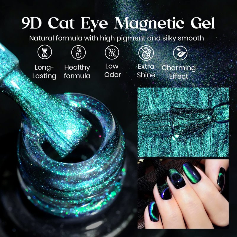 - SAFTY&LONG-LASTING: 9D Cat Eye Gel Polish made from natural resin, healthy ingredients, low odor and toxin-free, no harm to nails. Premium formula not easy to peel off, allow lasting for 21+ days with proper application