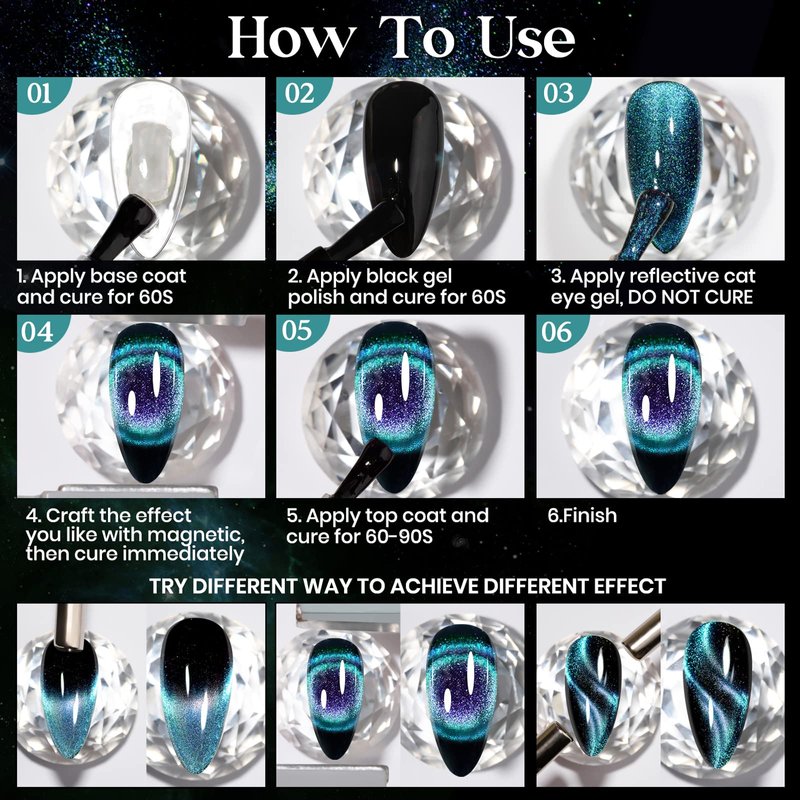 - CHARMING EFFECT: Not only with cat eye effect but also with chameleon clolor , Holographic shimmer with Galaxy Effect. Different light and angles will create a variety of amazing effects