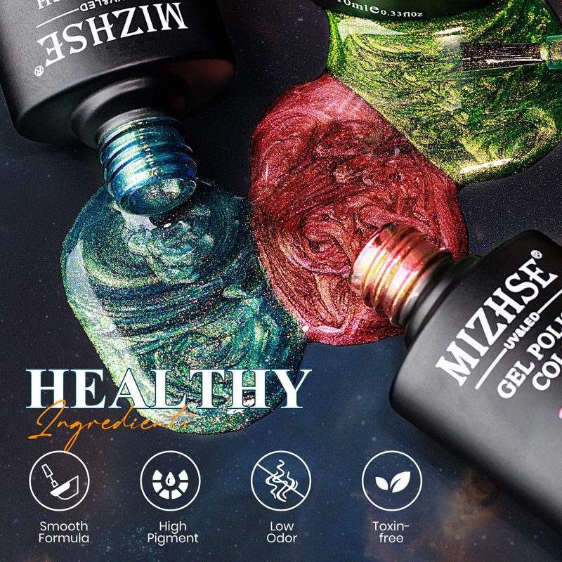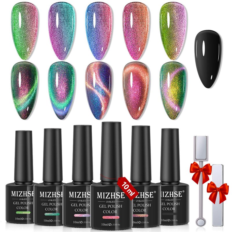 - 【Elves on Nails and Ideal Gift Choice】Made from natural resin, healthy ingredients, low smell, non-toxic. Delicate texture can be easy to create more obvious and shinier 9D cat eye effect. MIZHSE cat eye gel nail polish can be a great choice as a gift for friends and families on festivals such as birthdays, Mother's Day, Valentine's Day, Christmas, New Year and so on.