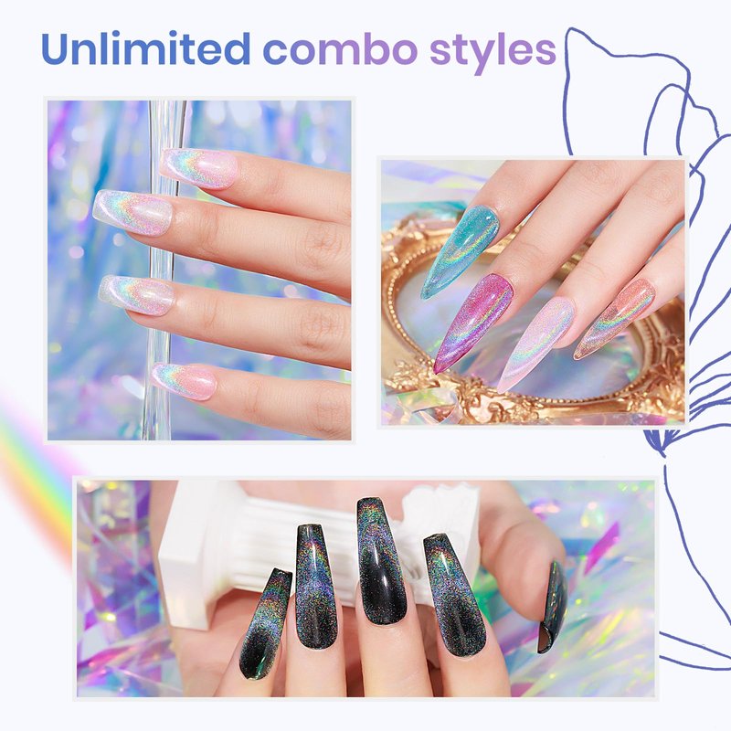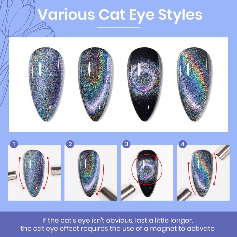 - 🌈😺【Holographic Rainbow Cat Eye Gel】This rainbow cat eye gel can match with any color gel, you can create your own color. And the glitter sequins that sparkle and twinkle, make you conspicuous in the crowd.