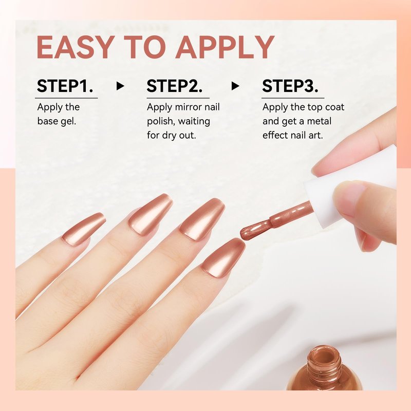 - ✨【Warm Tips & Customer Service】✔1. The display color may vary slightly due to factors such as lighting and display settings. ✔2. This item is water-based nail polish, suggest applying a water top coat to last and brighten your nails. ✔3. Avoid any water for 2 hours after applying the polish. If our metallic nail polish set has any problem, please contact us directly, and we will try our best to help you and offer to replace or refund service.