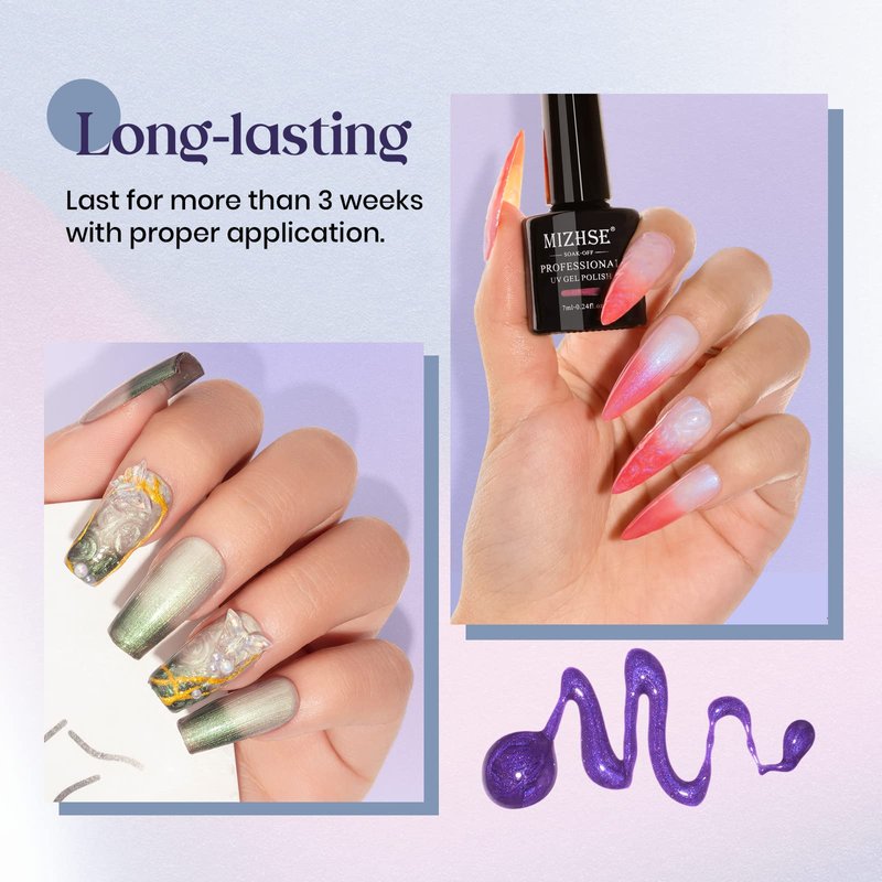 - 💕 【Color Changing Nail Polish】3-in-1 mood changing nails polish, not only can be pearl gel polish but also can be shell thread gel polish and have color changing effect.