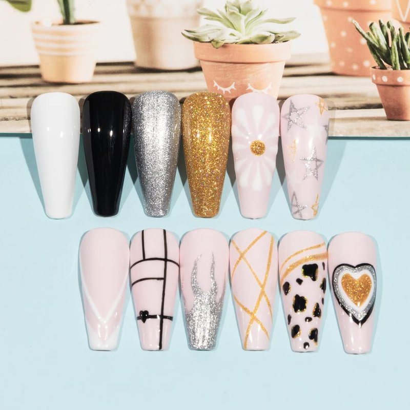 - PACKAGE INCLUDES: 4 bottle of nail art gel for line with 7ml/0.23fl oz. Black and white color is the most base color of nail manicure, Convenient use for both amateur nail art lovers and professional salon manicurists. UV/LED lamp require