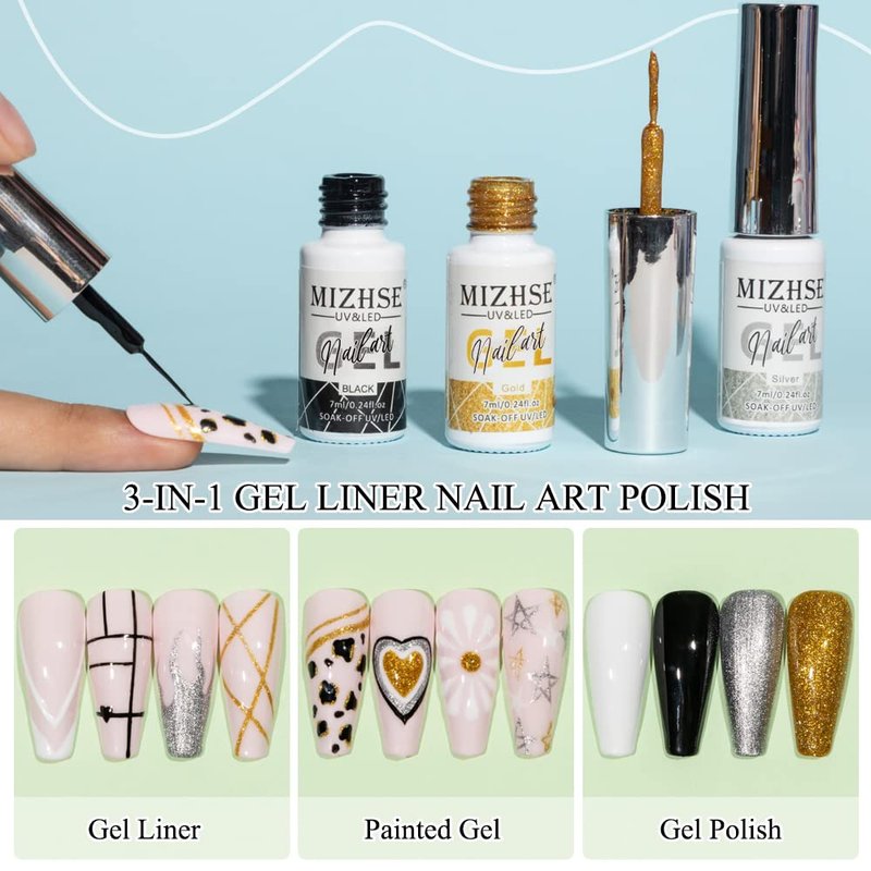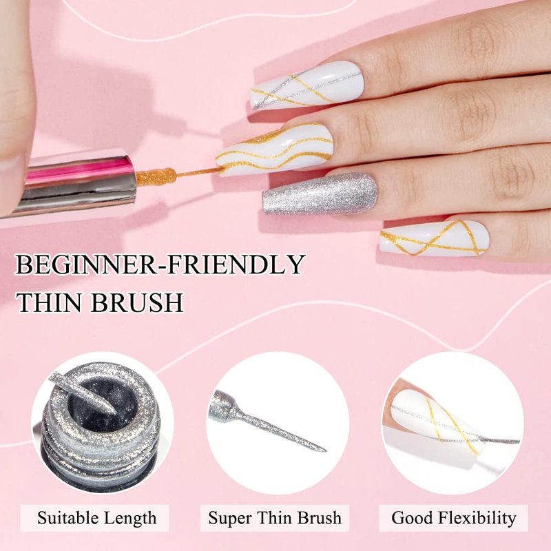 - WIDELY USE: Liner Gel can be used as regular color gel polish set and gel paint for nail design. Great for painting, drawing, sumi, pull line, dotting, striping etc. make you craft squiggly lines, french minimalist lines, swirl nails and geometric nails easily.