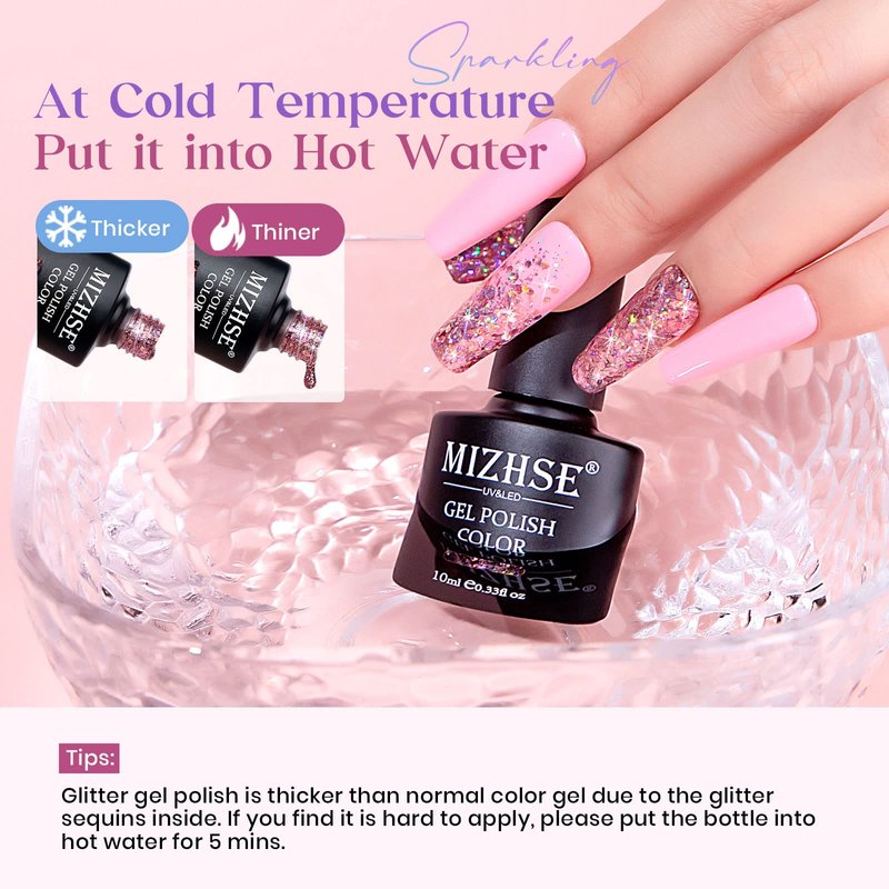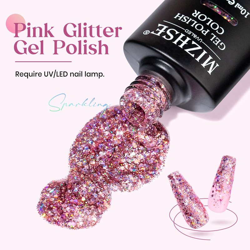 - Glitter Gel Polish: Pink color sparking glitter gel polish, perfect for any season and daily life.
