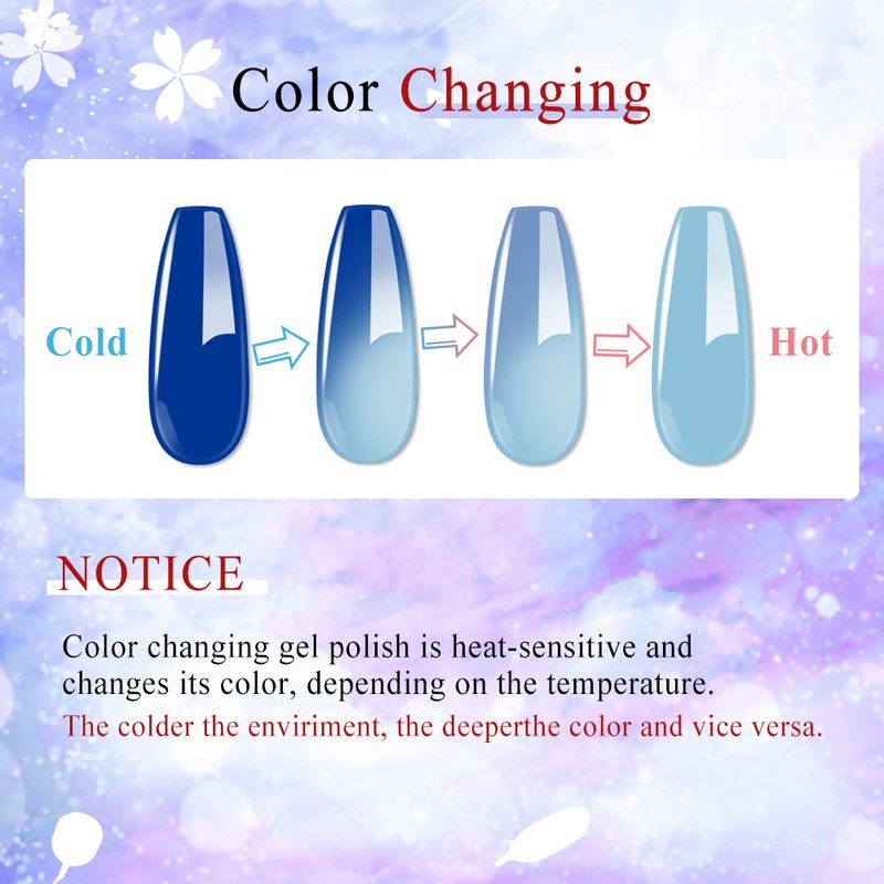 - ❀ Warm Tips: Color changing is not only affected by body temperature, but by environmental temperature. The product contains enough luminous powder, in order to make the luminous effect more obvious, so it will be thicker than other gel. Shake it before use to make the luminous powder and color gel fully blend.