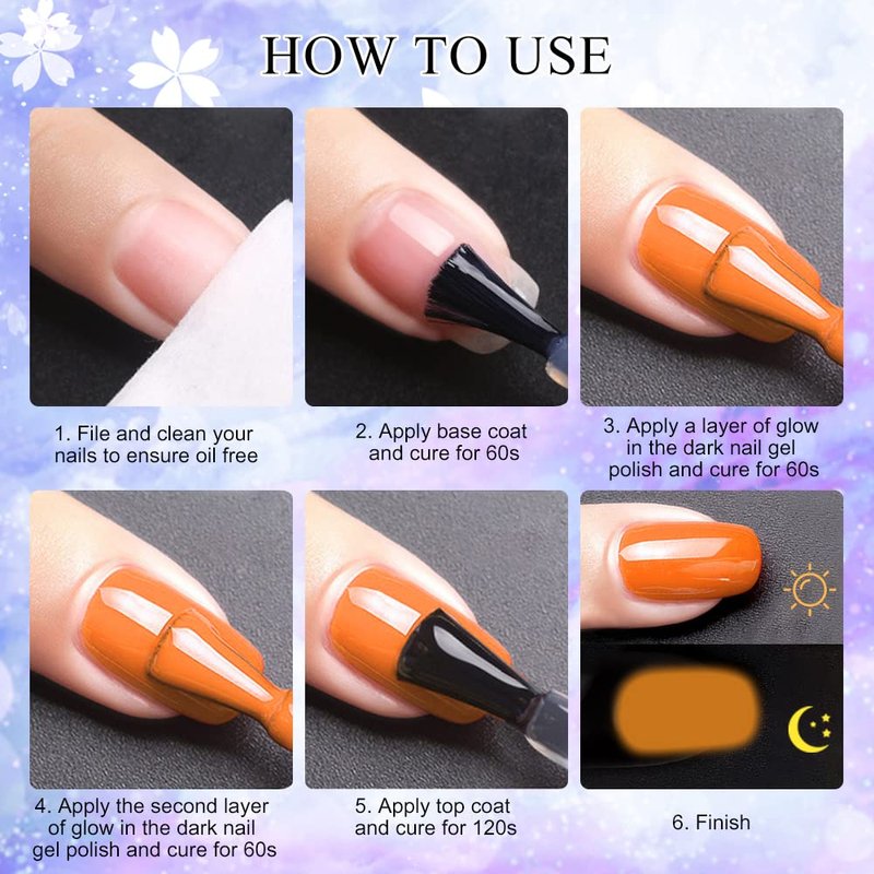 - ❀ High Quality: Glow in the dark gel nail polish last at least 21 days to keep your nail art colorful and Shiny. This gel nail polish made of healthy, environmental, friendly, non-toxic, pungent ingredients, which is easy to use.