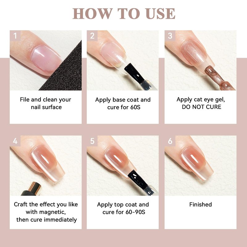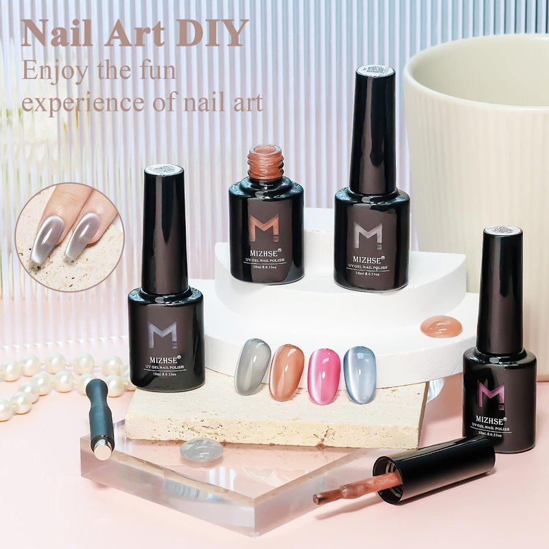 - WARM TIPS: Please do skin test and read directions carefully before use. Avoid contacting with eyes,mouth or skin. Require base top coat and UV/LED nail dryer lamp. Enjoy professional-level nail art & care with MIZHSE's Cat eye gel and click "Add to Cart" now