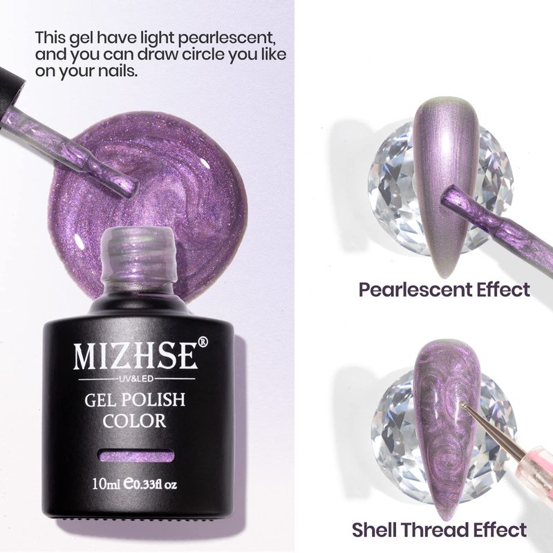 MIZHSE Pearl Gel Nail Polish, Shimmer Mermaid Nail Gel Glitter Drawing Soak Off UV Gel for Nail Salon Home DIY Manicure Use