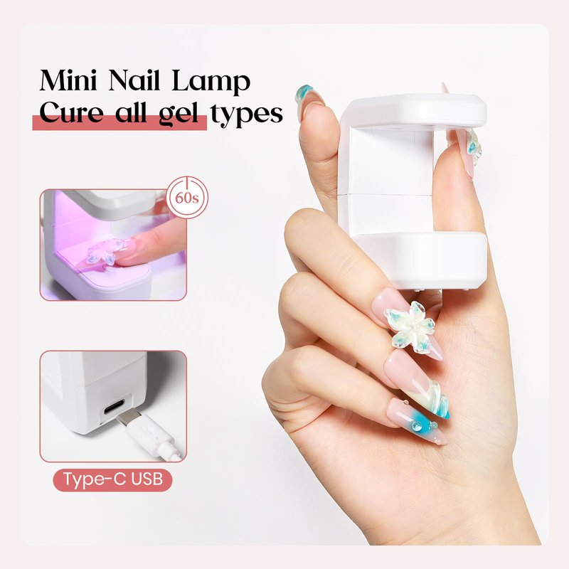 - Quick 3D Nail & Curing in One Kit: Our mini UV lamp is expertly crafted to cure gel products with precision, including our innovative solid builder nail gel, base, and top gel. Despite its small size, it delivers professional-quality results every time. Achieve salon-effect nails in the comfort of your own home or while you're on the go.