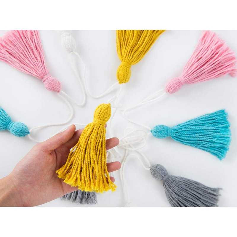 - PACKAGE INCLUDE: Package: 2pcs Tassel Garland. Made from natural cotton strings, which is more durable and reusable. The distance between each tassel and total length can be adjusted to the best as you like.