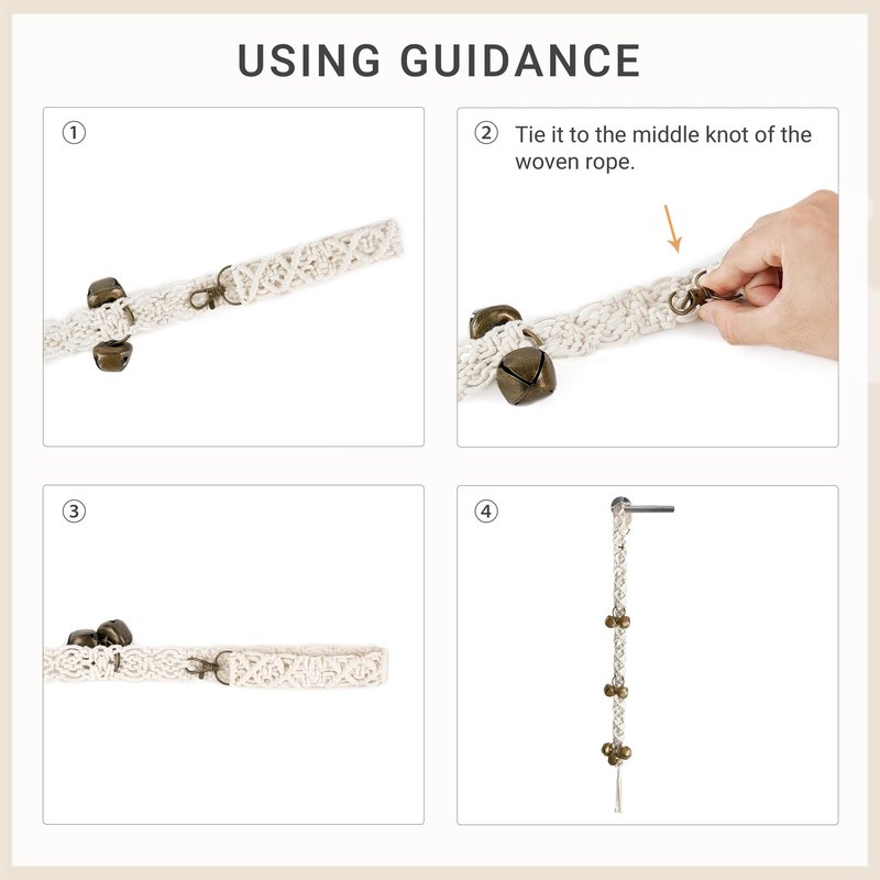 - Attractive Design : The hanging dog potty bell is hand-woven with premium cotton rope to create beautiful patterns and macrame tassel, combining with 7 bronzed bells which are made of durable metal to provide excellent jingle sound quality. It is not only a doorbell, but also a perfect decoration for your room.