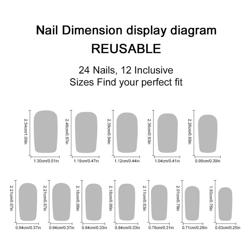 - 【Package】You will get 24 pieces of press on nails square in 12 sizes, our set comes with jelly glue stickers 1 nail file, and 1 piece of wooden stick for removing fake nails, we recommend using your own glue.