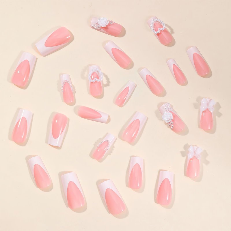 - 【Easy Application】White french tip fake nail with bow rose designs just choose the nail piece that suits you, polish the nail bed, paste the jelly glue we give away, and press trendy nails for 30s to get the natural manicure that girls like.